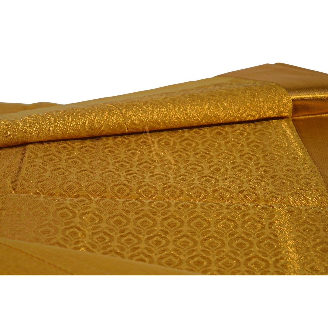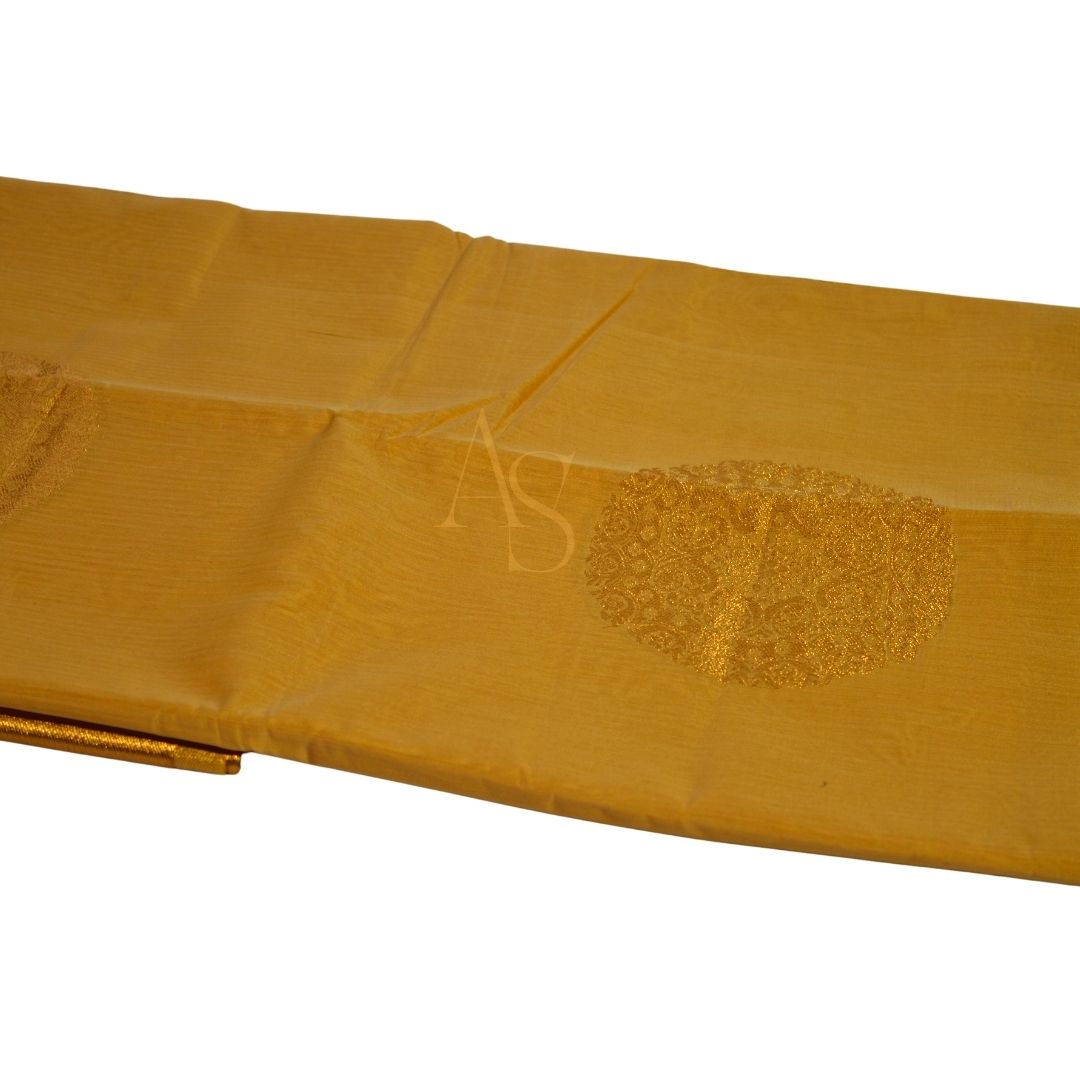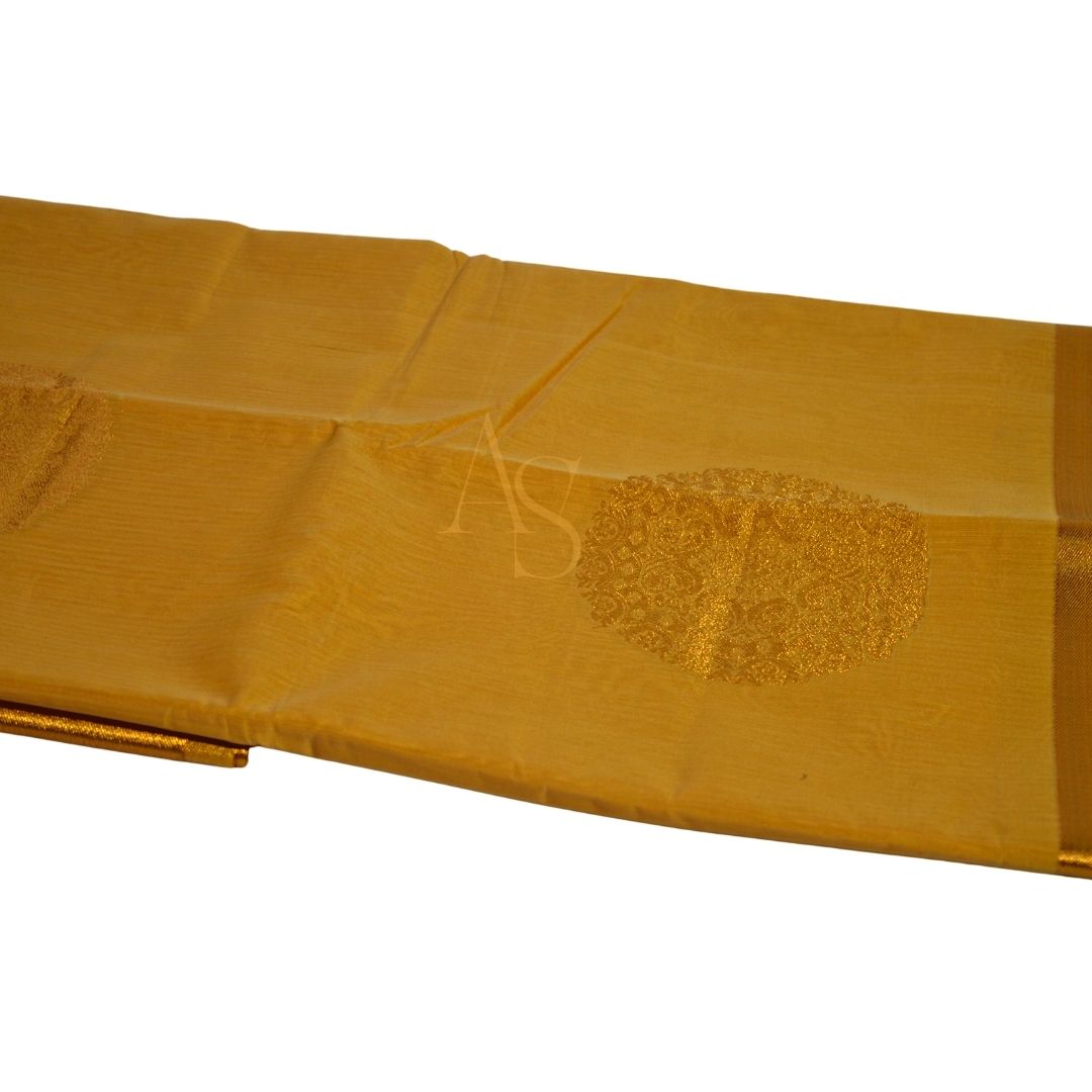Kora cotton silk sarees! Crisp, lightweight and translucent with a natural sheen that adds a beautiful look to the sarees. This saree with its woven golden zari chakras take these sarees to another level. The golden woven border adds the seal of beauty and quality on this saree. Saree comes with matching plain blouse piece.